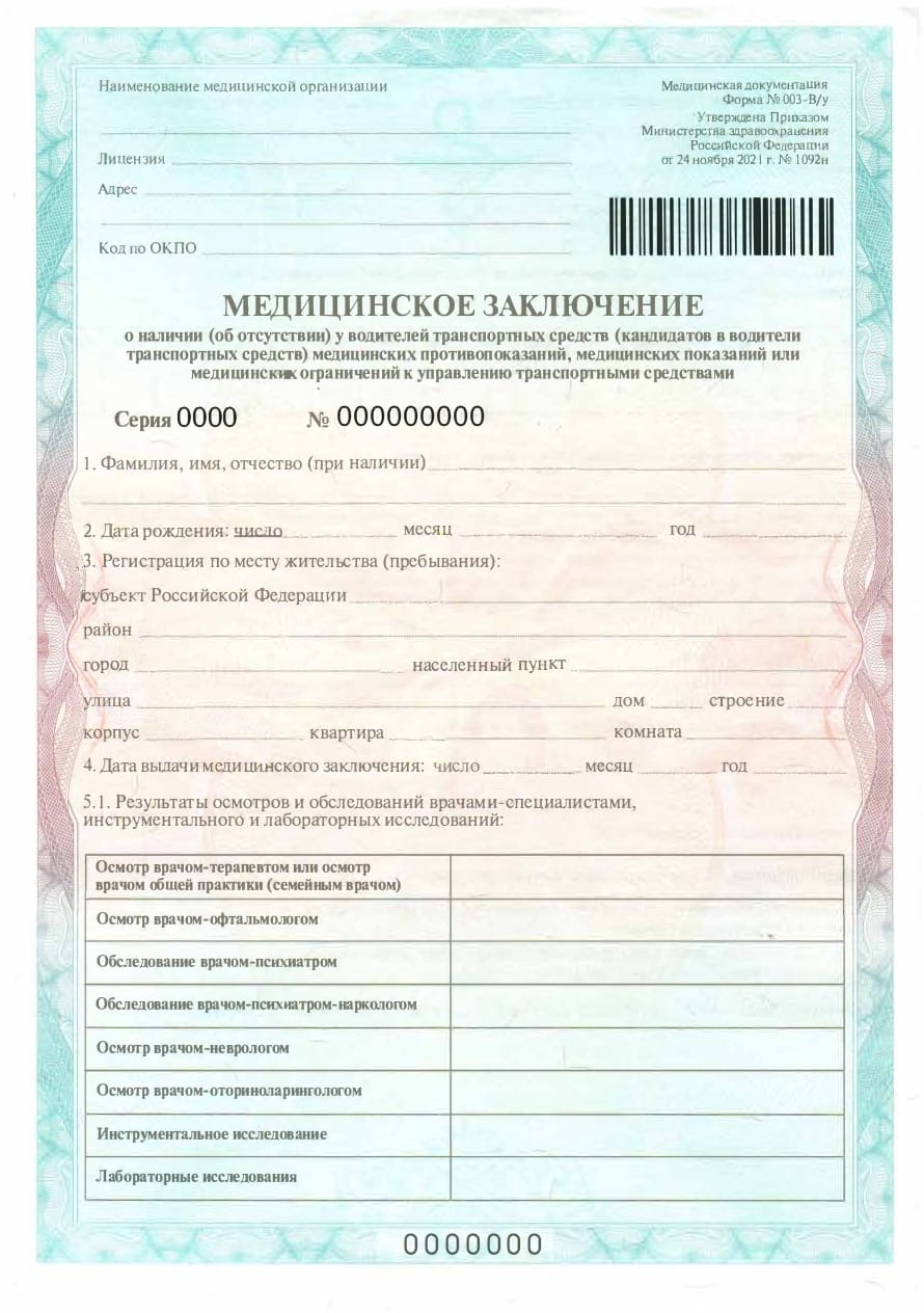 Справка 003 в/у для ГИБДД