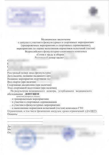 Получить справку для Гонки героев можно в муниципальной поликлинике или в частном медучреждении. Для допуска нужно сделать ЭКГ, сдать анализы, получить заключение у кардиолога, невропатолога, окулиста, травматолога. Потребуются и результаты ФЛГ. Срок действия обычной справки 6 месяцев, если она нужна сроком на 1 год, то потребуется пройти более расширенное обследование.
