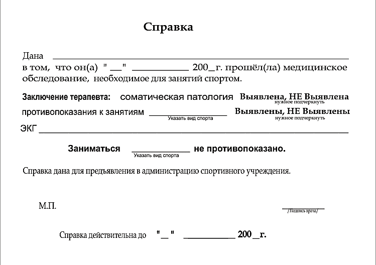 Образец спортивной справки для ребенка
