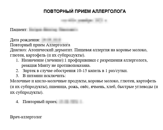 Образец справки от аллерголога