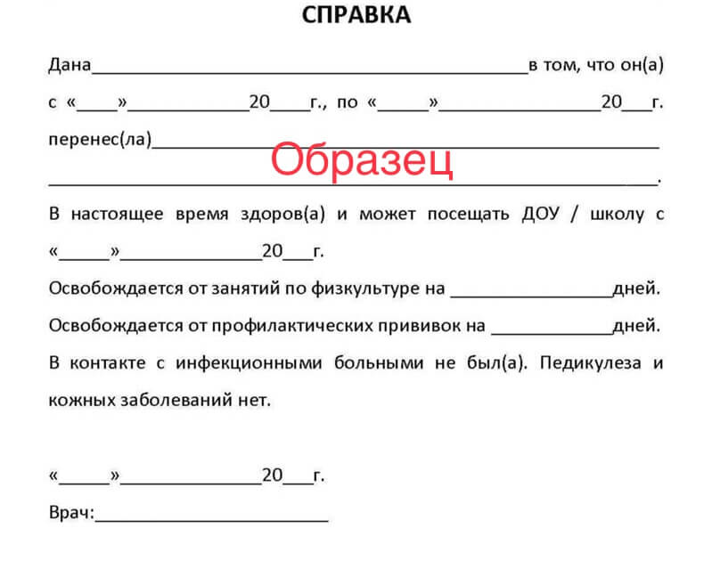 Серьезные проблемы со здоровьем требуют тщательного обследования, сдачи анализов в медицинском учреждении, прохождения терапии. После выписки дается заключение, которое предоставляют в сад, школу для подтверждения факта болезни и обоснования выхода (выздоровление). Посещение частной клиники, поликлиники для оформления справки нужно запланировать и в других случаях: